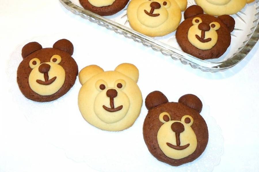 Предлагаю рецепт очень вкусного песочного печенья из светлого и тёмного теста и идею оформления в виде весёлых медвежат.
