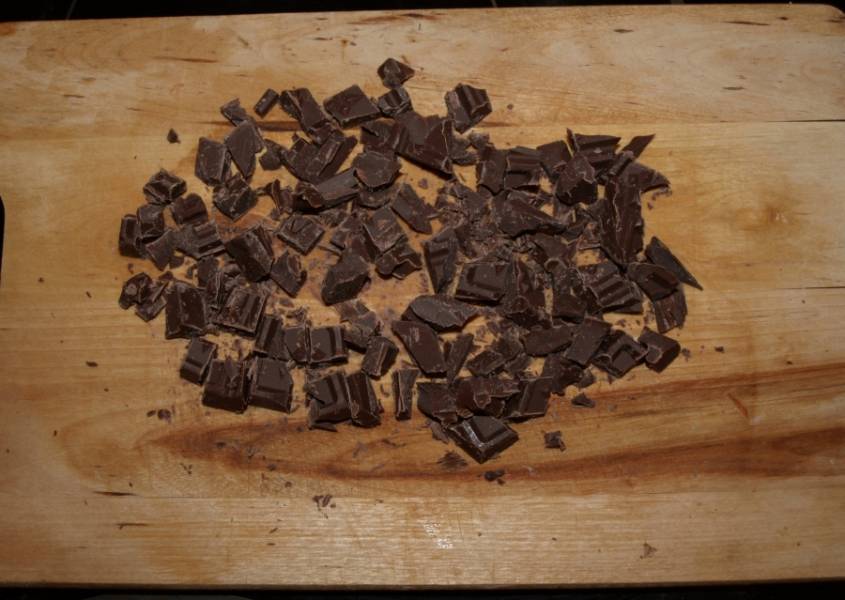 Шоколад рубим ножом.