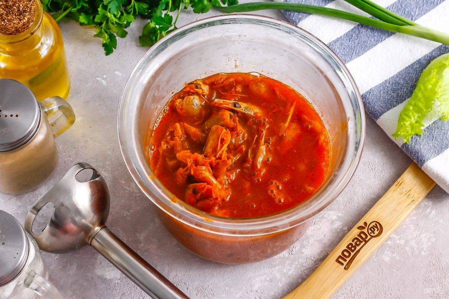 Отпюрируйте погружным блендером, измельчая даже мельчайшие частички панцирей.