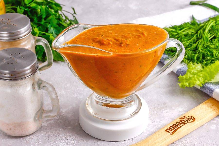 Выложите в соусник и подайте к столу в теплом виде.