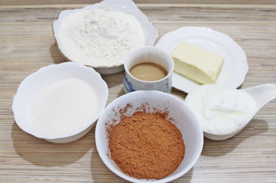 Подготовьте все необходимые ингредиенты. Достаньте сливочное масло из холодильника за 1-2 часа до начала приготовления, чтобы оно было очень мягким. Кофе растворите в горячем молоке и остудите.