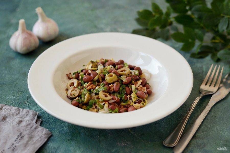 Салат с фасолью и луком пореем готов, приятного вам аппетита!