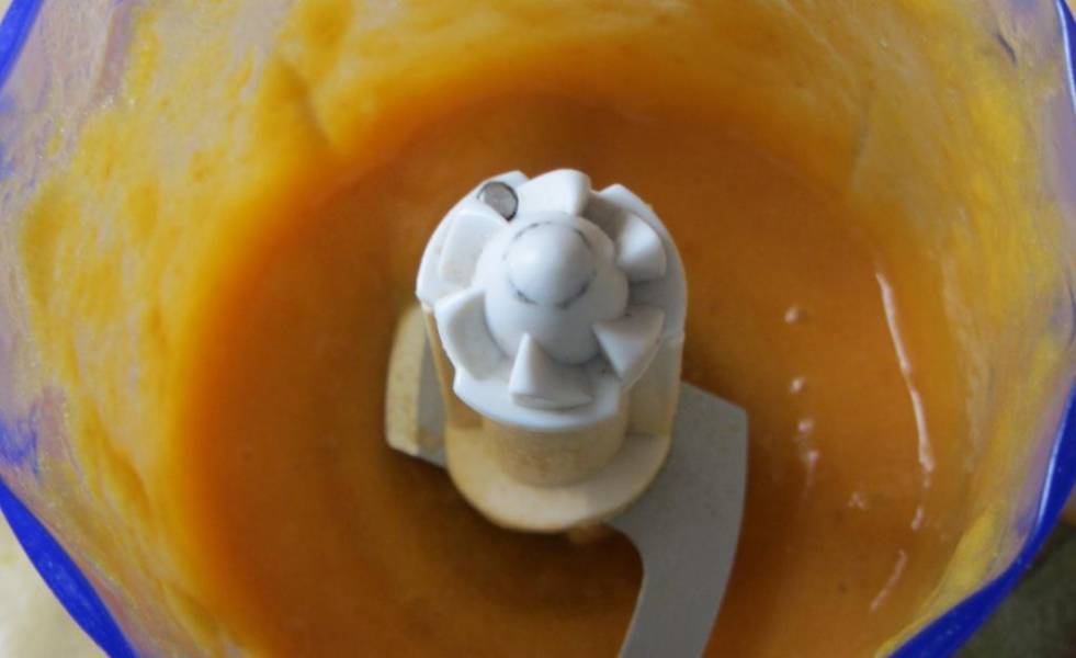 3. Когда абрикосы будут готовы, даем им немного остыть и отправляем в комбайн или измельчаем блендером. Масса должна быть похожа на пюре.