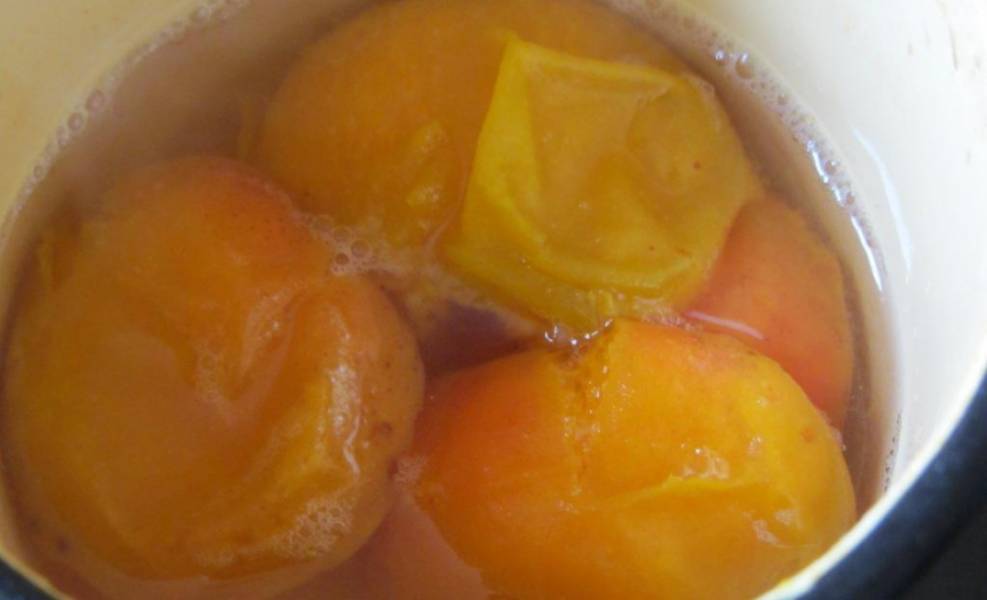 2. Ставим вариться фрукты. Абрикосы варим на протяжении получаса на очень слабом огне. Не забывайте постоянно помешивать.