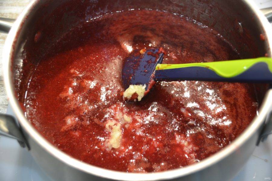Перетертые ягоды снова нагрейте, посолите по вкусу, добавьте по вкусу сахар.