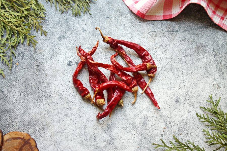 Подготовьте все необходимые ингредиенты для приготовления аджики из сухого острого перца.