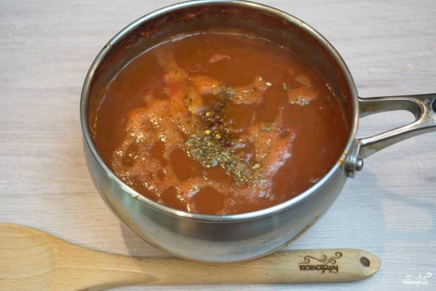 Поставьте на огонь, добавьте специй (молотый кориандр, душистый молотый перец, соль, сахар, черный молотый перец и другие специи). Помешивая, варите около 40 минут.