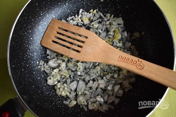 Лук и чеснок очистите и обжарьте на разогретом масле до прозрачности.