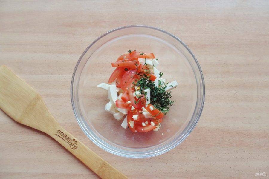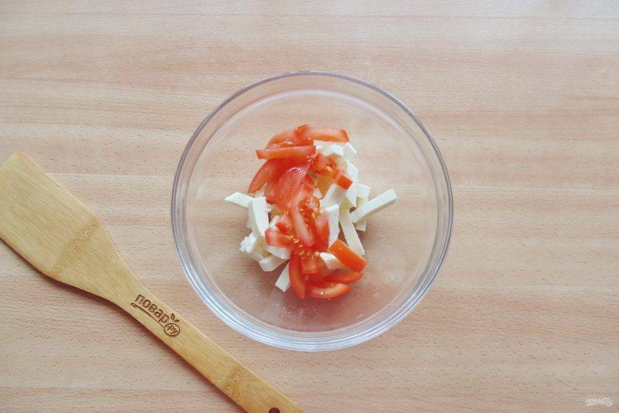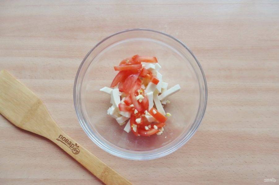 Добавьте нарезанный помидор.