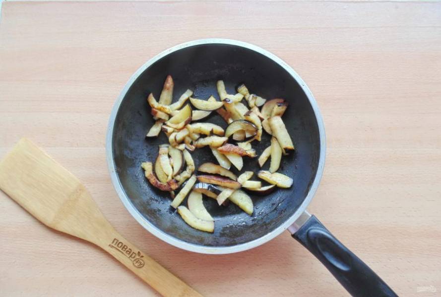 Обжарьте баклажан до золотистой корочки.