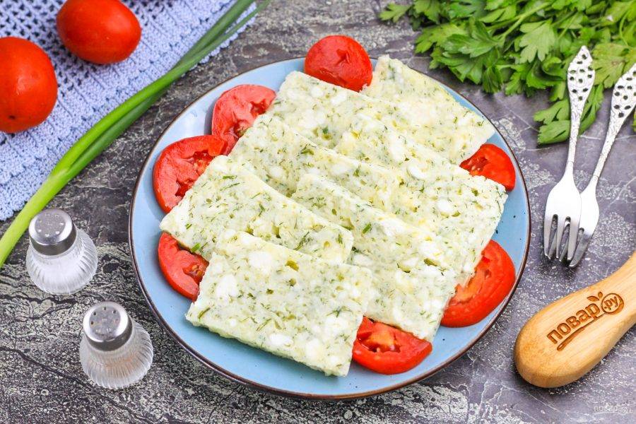 Нарежьте сыр теплым ножом, смачивая его в горячей воде. Подайте к столу адыгейский сыр охлажденным. Приятного вам аппетита!