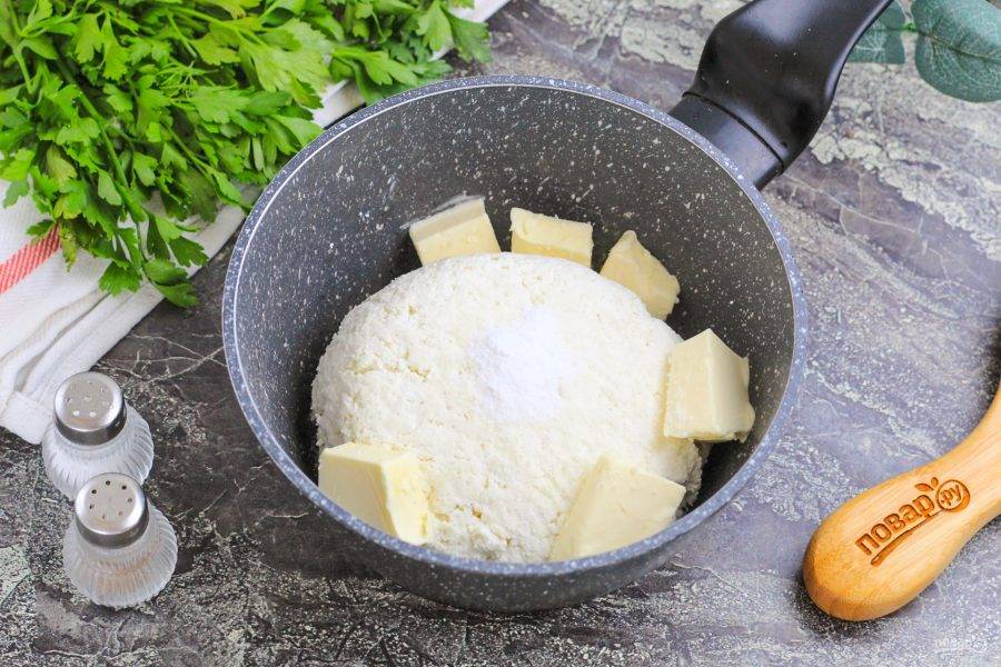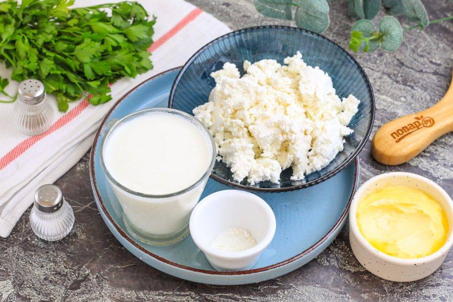 Подготовьте указанные продукты. Творог можно выбирать любой жирности, главное — не слишком влажный.