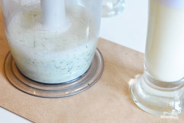 2. Подготовьте блендер и отправьте туда кефир, зелень и сыворотку. Кстати, последний ингредиент можно заменить минеральной водой, например.