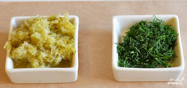 1. Обсушите немного огурчики и натрите на очень мелкой терке. Вымойте зелень и острым ножом нарежьте очень мелко.