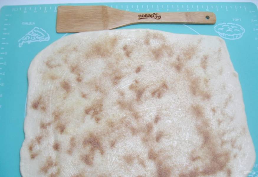 Сахар смешайте с молотой корицей и посыпьте тесто.