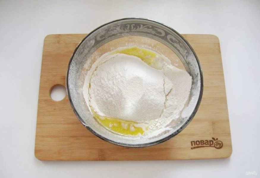 Постепенно всыпьте муку.