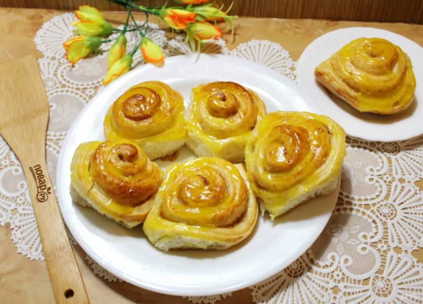 Готовые булочки полейте глазурью и подавайте к столу. Приятного чаепития!
