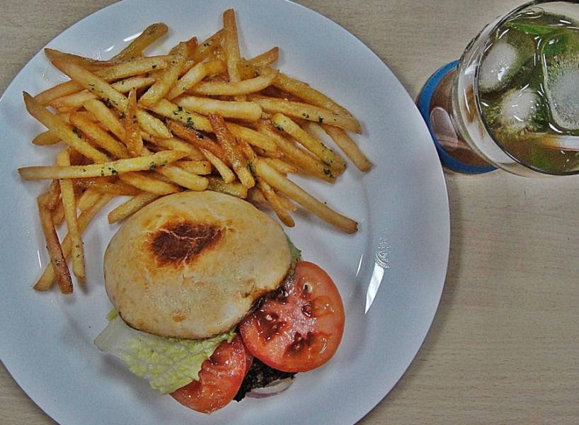 Можете поджарить бургер и подать его с картофелем фри.