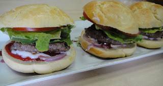 Если американский бургер соорудить на своей кухне, то не такой уж он и вредный! Купите подходящую булочку и фарш - вот основа для бургера. Ну а лук и майонез дома есть всегда! Несколько минут и готово
