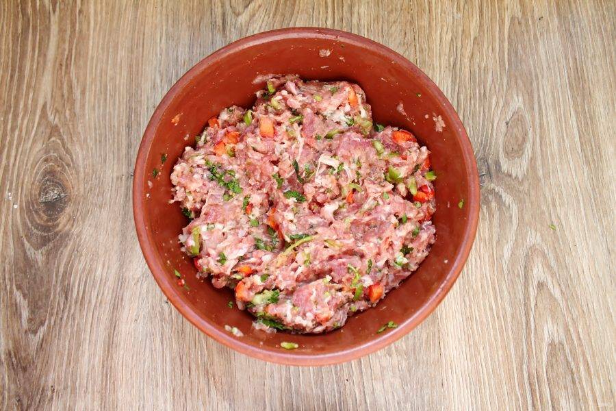 Все посолите, поперчите и перемешайте до равномерного распределения продуктов.