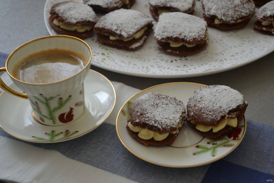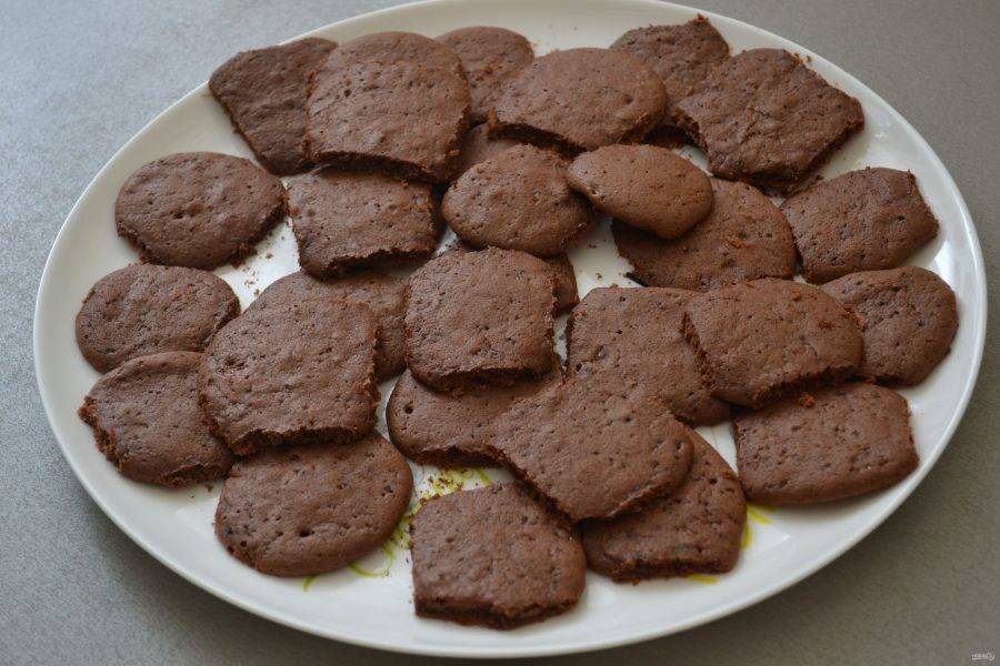 Уложите готовые бисквиты на блюдо, можно присыпать их сверху сахарной пудрой или сделать сеточку из шоколада.