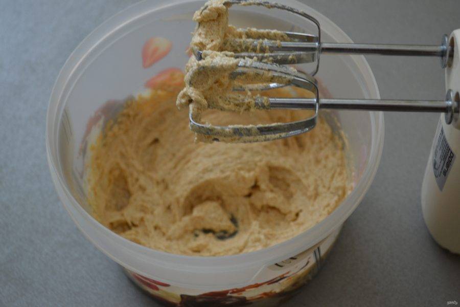 Добавляйте небольшими порциями молоко и смесь сухих ингредиентов, взбивая с каждой новой порцией.