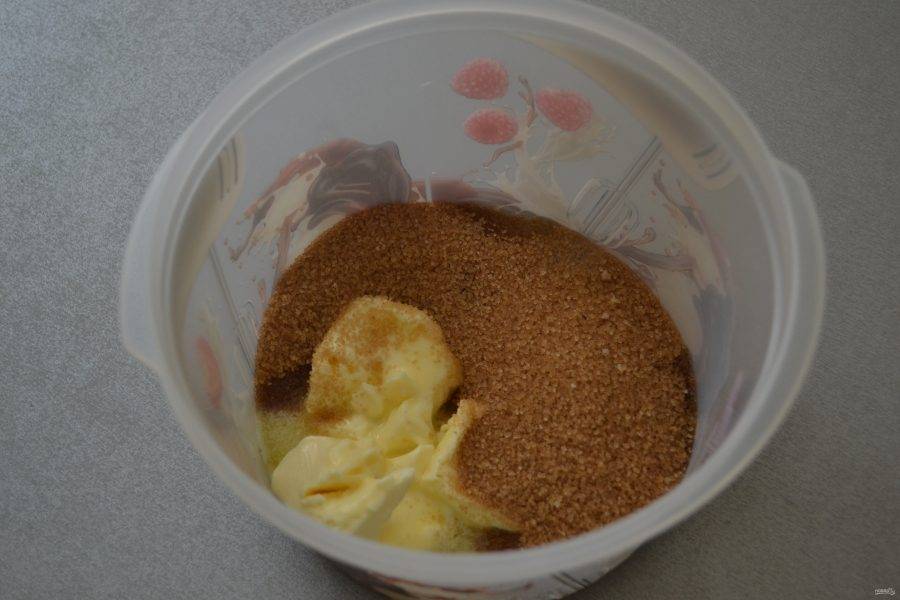 Размягченное сливочное масло смешайте с тростниковым сахаром.