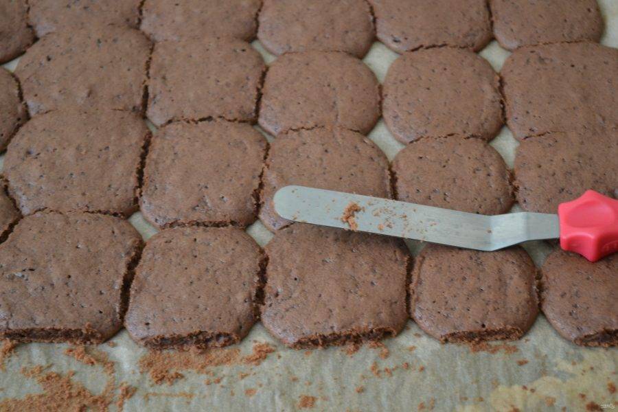 В процессе выпечки бисквиты не сохраняют свою форму, это надо учитывать при отсаживании теста на противень. Снимите бисквиты с помощью ножа или кондитерского шпателя.