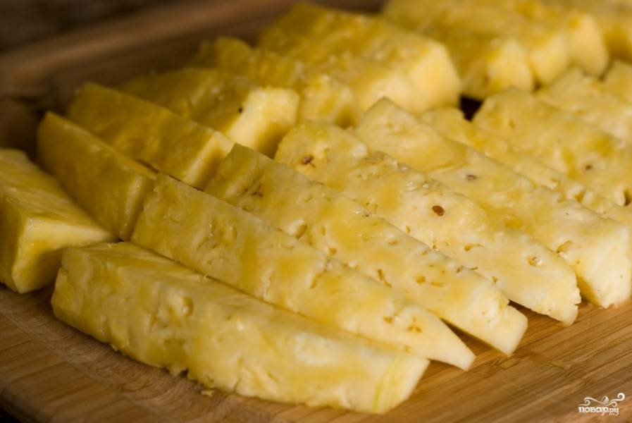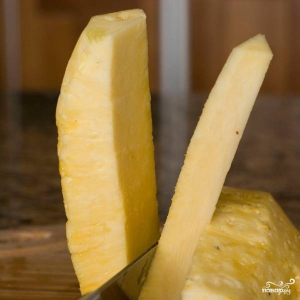 Из обрезанных кусочков кожуры ананаса можно сварить хороший компот. Нам же нужна исключительно мякоть ананаса.
