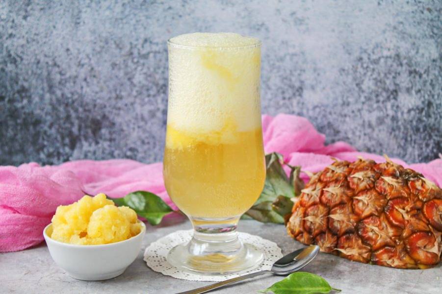 Разложите ананасовый лед по бокалам на 1/3 высоты.