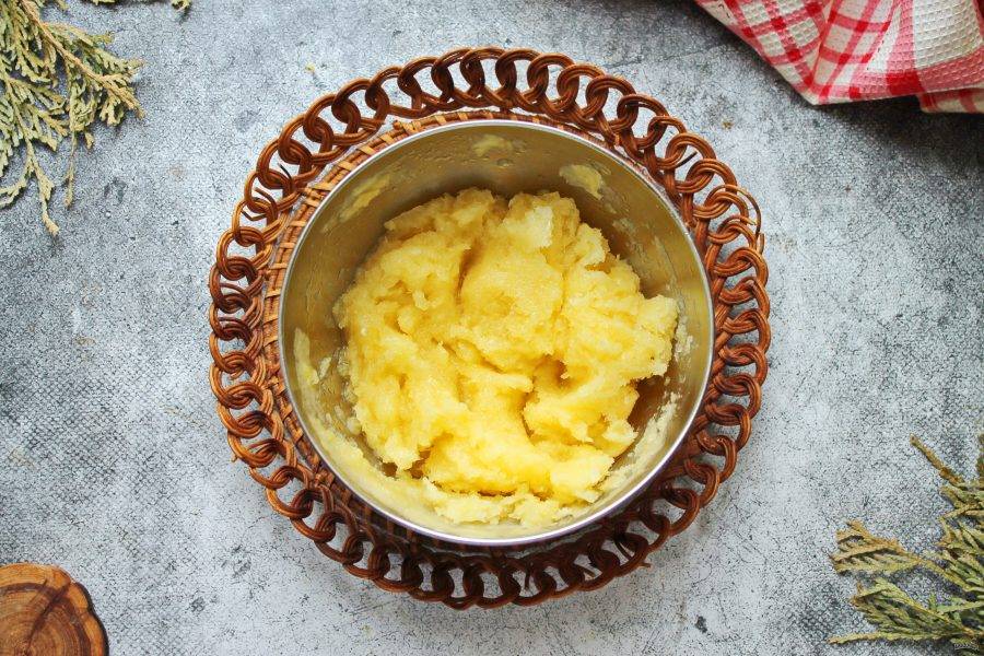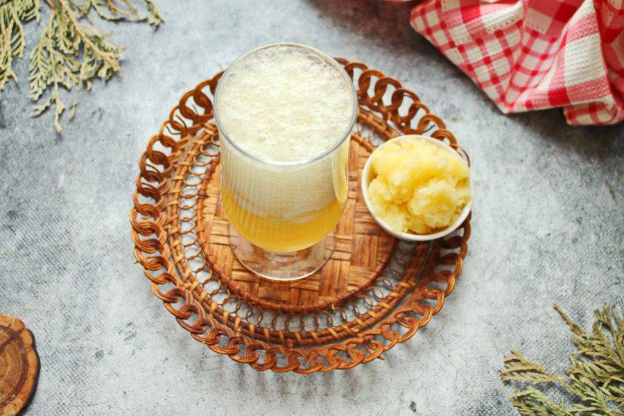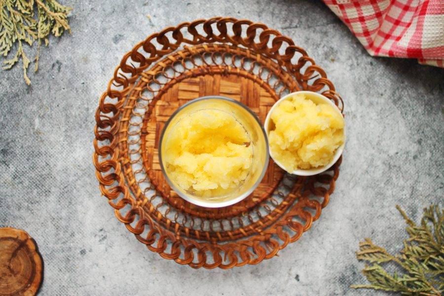 Поставьте миску с ананасовой массой в морозильную камеру до замерзания, перемешивая каждые полчаса. На это уйдет от одного до четырех часов, время будет зависеть от работы морозилки.