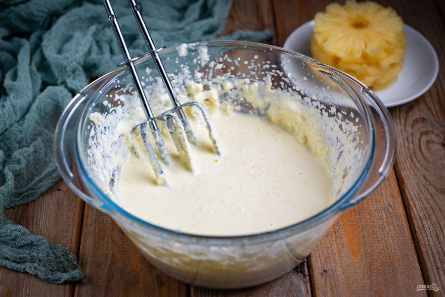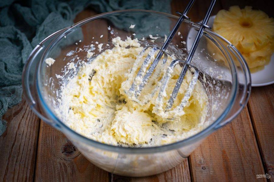 Миксером взбейте эти ингредиенты до кремообразной массы.