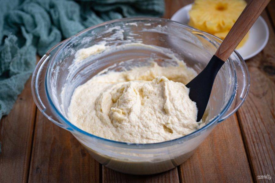 Лопаткой перемешайте все до получения однородного, вязкого теста.