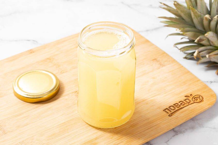 В итоге все части ананаса должны быть покрыты сиропом и не всплывать. По необходимости сверху можно поставить какой-то груз.