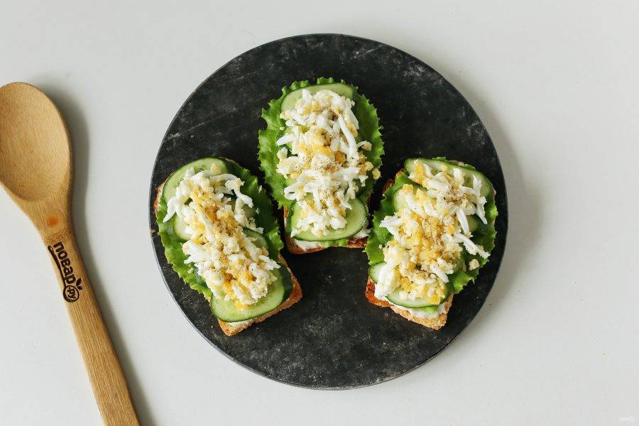 Классический английский сэндвич состоит из тонких ровных треугольных или прямоугольных кусков белого или зернового хлеба со срезанными корочками. Я позволю себе в домашнем варианте корочки оставить.