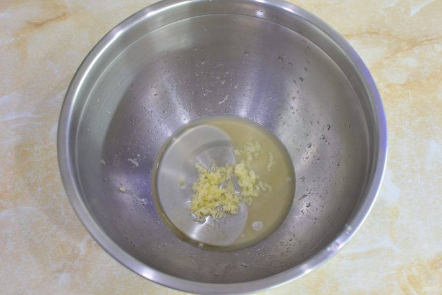 Очистите пару зубчиков чеснока и пропустите его через пресс.