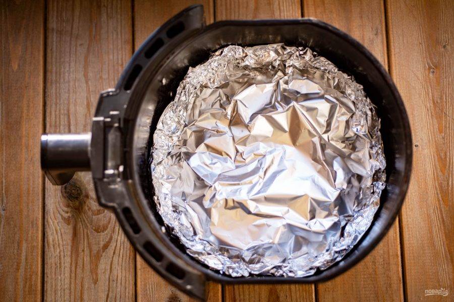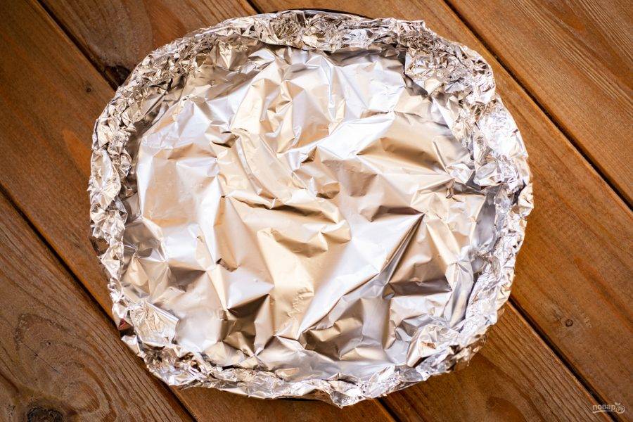 Поверх накройте еще одним листом, закрепляя края так, чтобы антрекот оказался внутри формы из фольги.