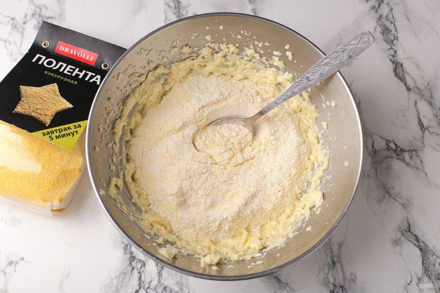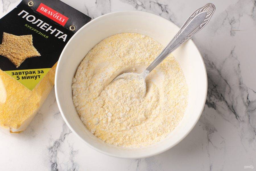 Соедините муку, поленту и соль.