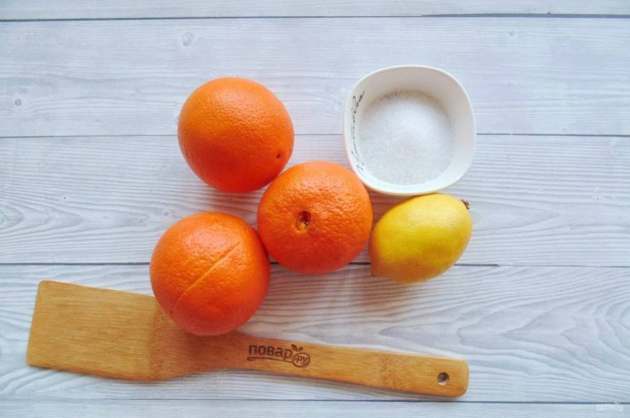 Подготовьте ингредиенты для приготовления апельсинового джема.
