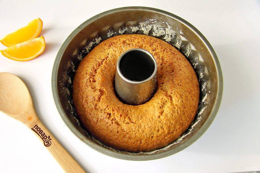 Готовому апельсиновому маннику дайте немного остыть, затем аккуратно извлеките, украсьте по вкусу и подавайте к столу.