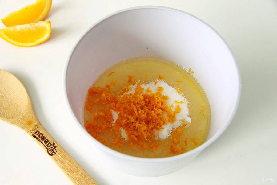 Затем добавьте сахар и апельсиновую цедру.