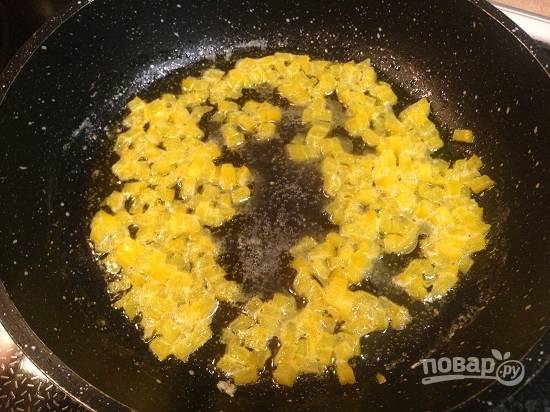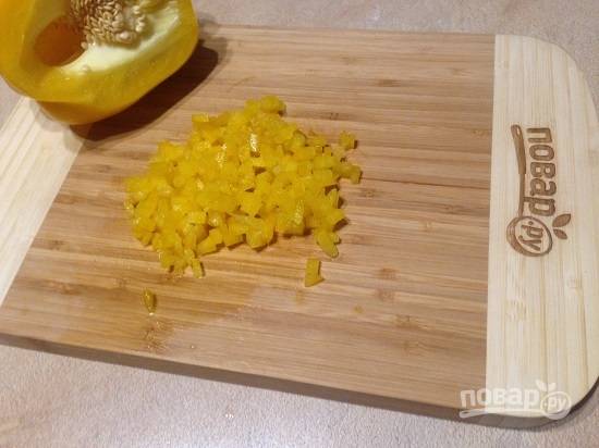 2. Болгарский перец нарезаем мелкими кусочками. Для яркости можно взять красный перец, а мне захотелось, чтобы соус получился солнечным :)