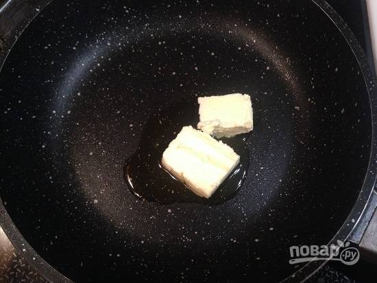 1. Разогреваем на среднем огне сливочное масло с оливковым.