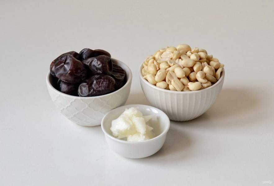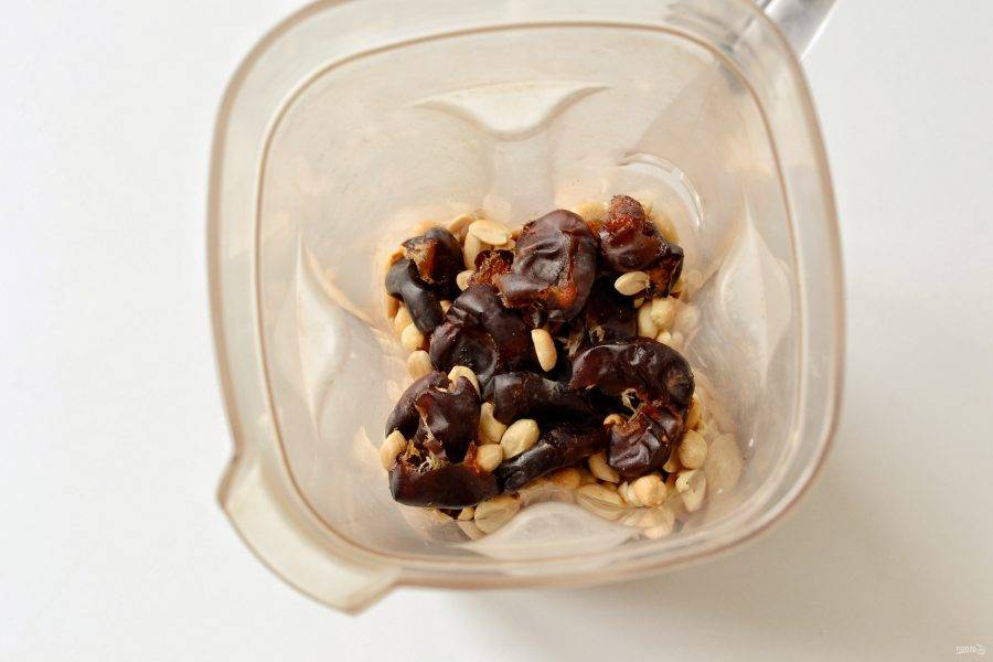 Измельчите в блендере финики вместе с арахисом.