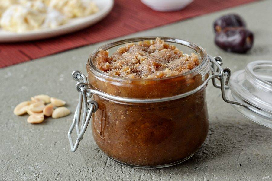 Переложите пасту в баночку. Арахисовая паста с финиками готова, приятного аппетита!