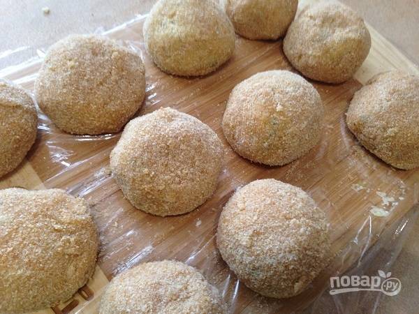 10. И обваливаем в сухарях. Затем еще раз в яйцо и в сухари, получается двойная панировка.