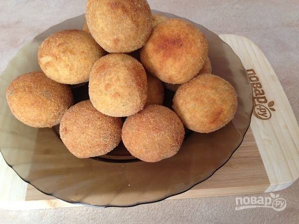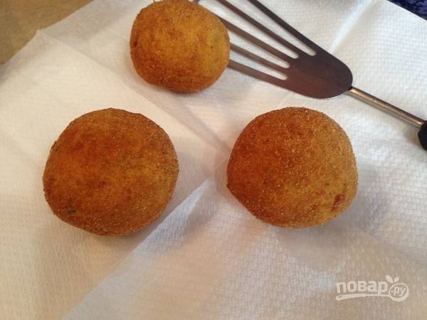 13. Выкладываем обжаренные золотистые аранчини на бумажные салфетки.