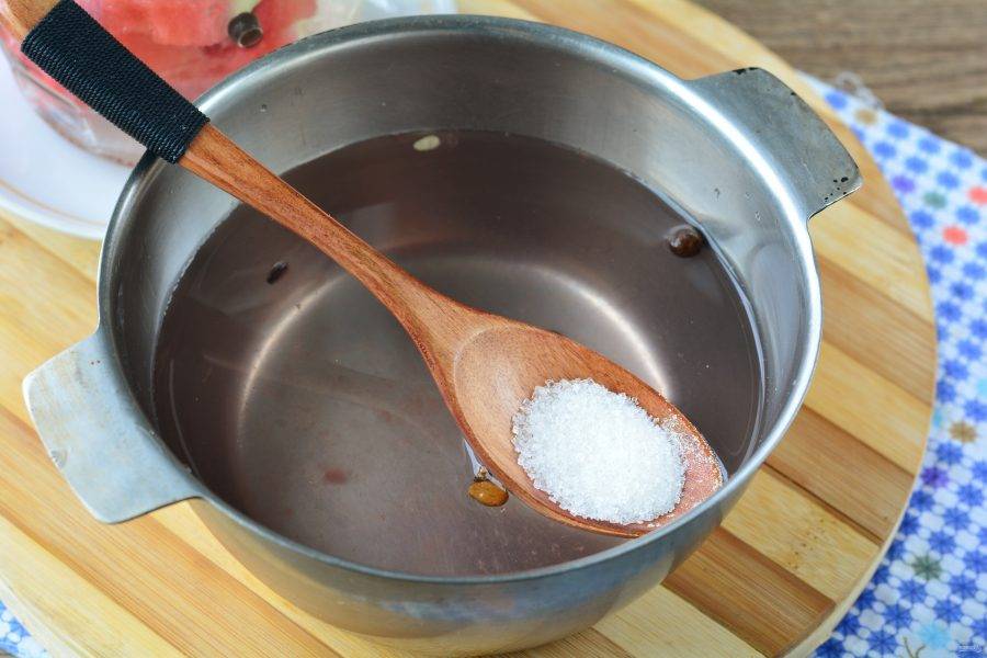 Всыпьте сахар, и сварите сироп. Также добавьте немного соли. Вскипятите.