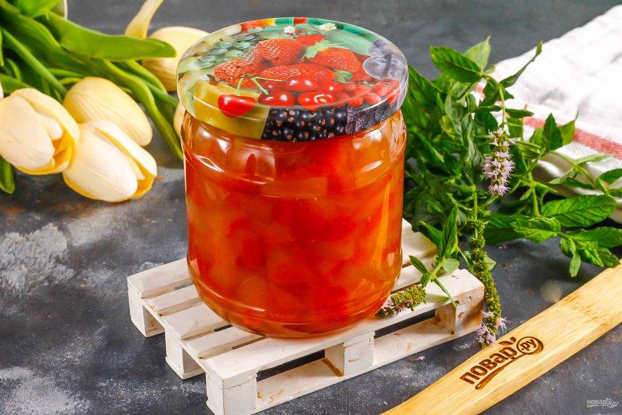 Закрутите крышку по резьбе или с помощью ключа для консервации. Остудите заготовку и перенесите в кладовую.