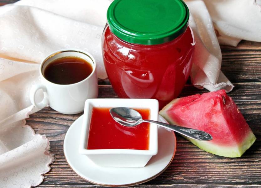 Банки вымойте с пищевой содой в горячей воде и простерилизуйте. Разлейте арбузное варенье по банкам, закройте прокипяченными крышками и укутайте до полного остывания.